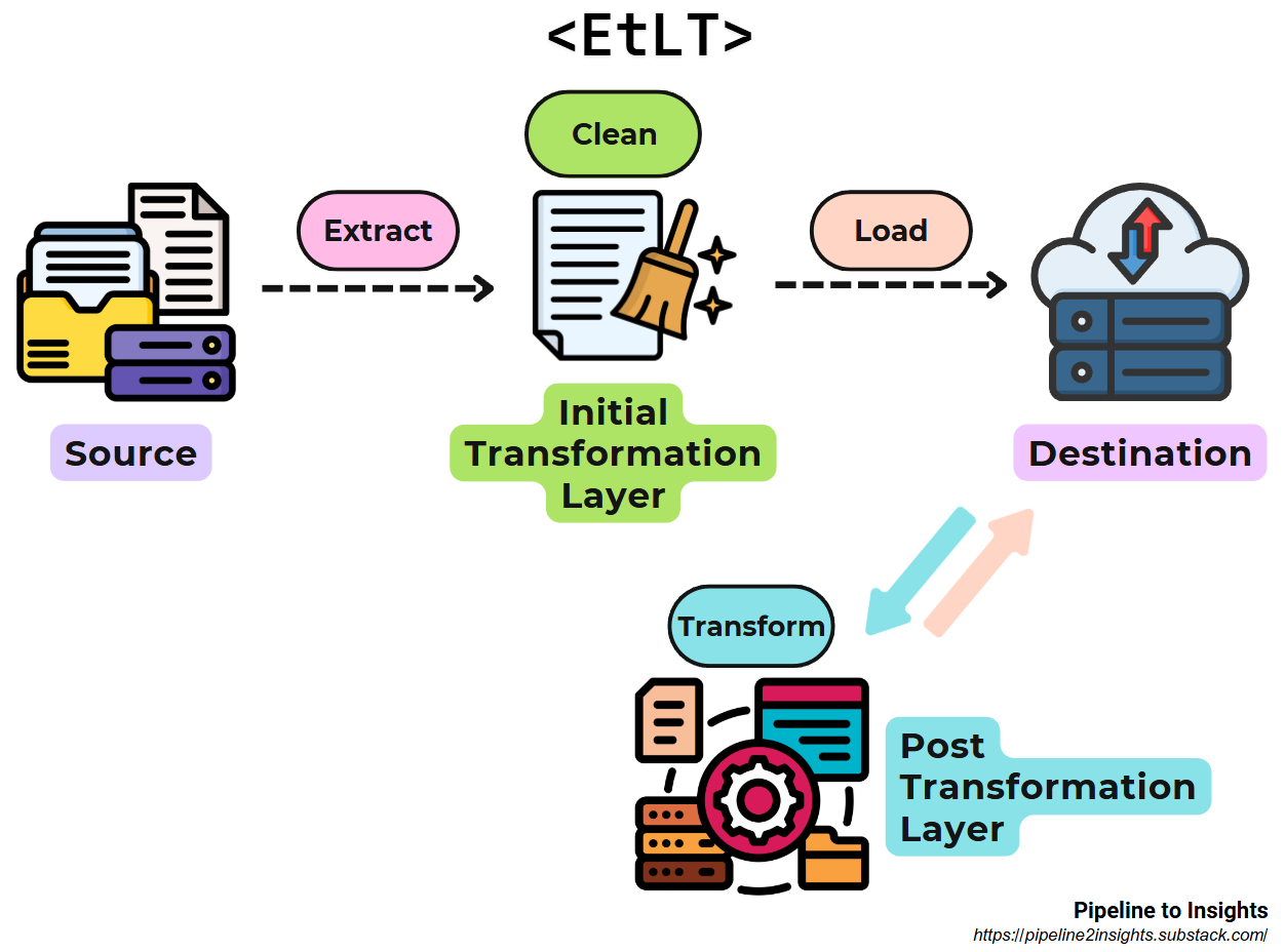 Purpose: Combines fast availability with initial data cleaning and post-load transformations.