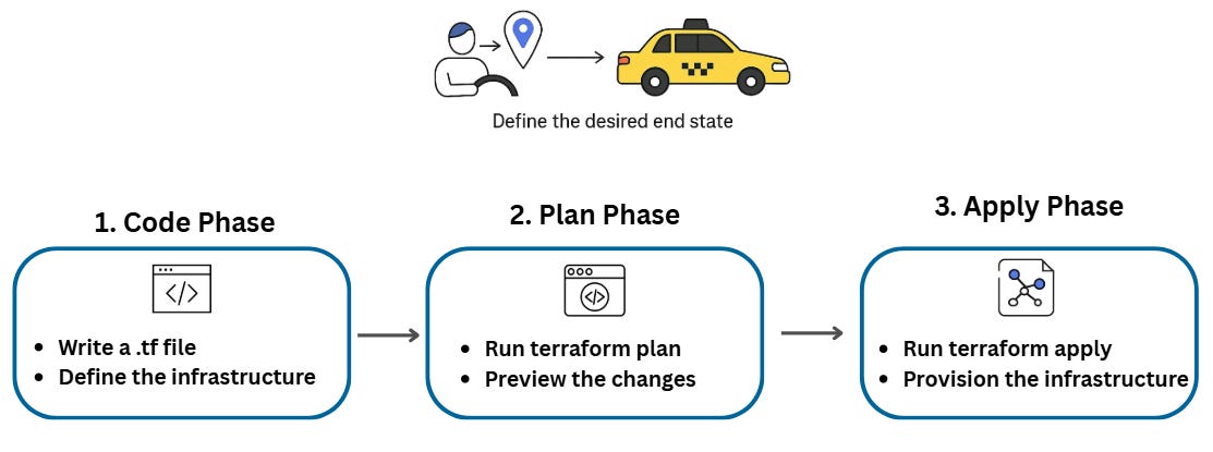terraform planto compare our current state (empty) with our desired state (defined in code).Terraform shows exactly what it will create, change, or destroy, before it touches anything.