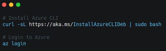 Since we’re using Azure as our provider, we’ll also install the Azure CLI (in this example, on Ubuntu).