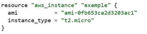 Terraform configurations are written in HashiCorp Configuration Language (HCL)14 and stored in files with the .tf extension. These human-readable files define our infrastructure resources using a simple, declarative syntax. For example, we can create an AWS EC2 instance :