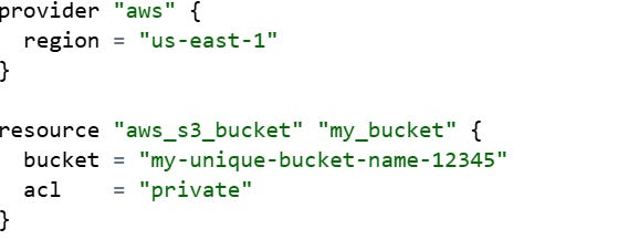 For example, the below config sets the AWS region and creates a private S3 bucket