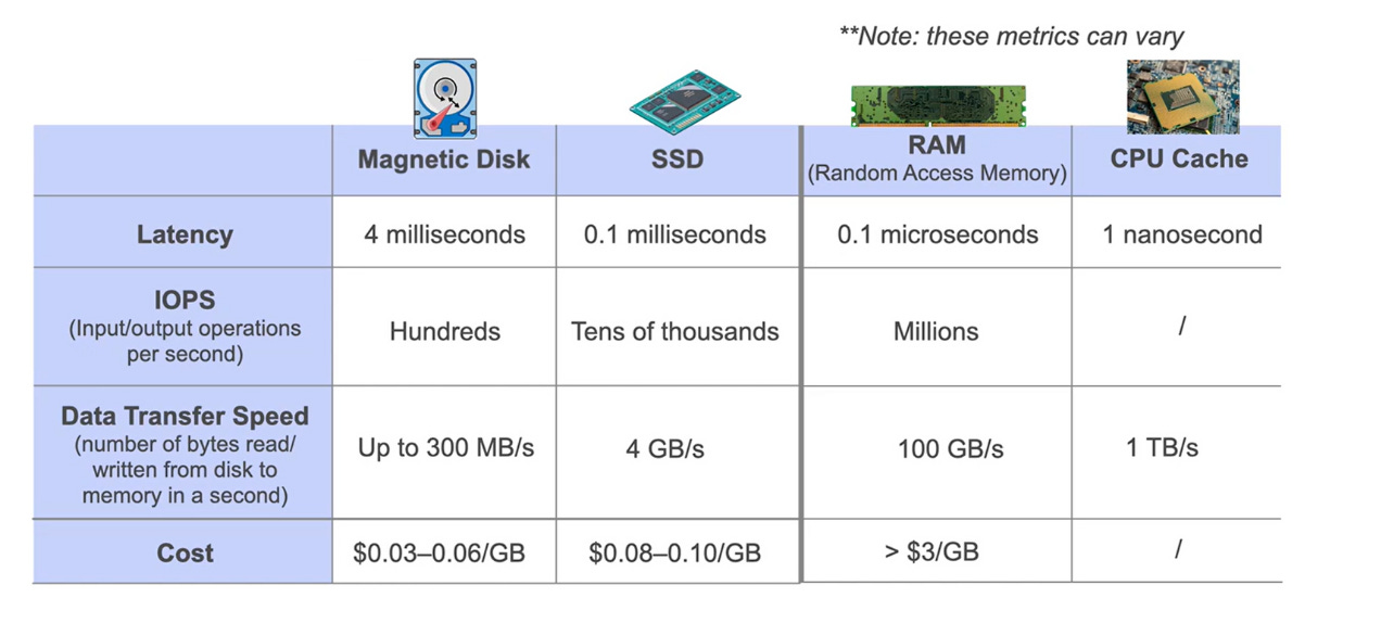 As data engineers, we need to understand the performance, durability, and cost of these raw ingredients to choose the right one for each use case. Data moves through persistent storage (like HDDs or SSDs) and volatile memory (like RAM and CPU cache) as it flows through the pipeline.