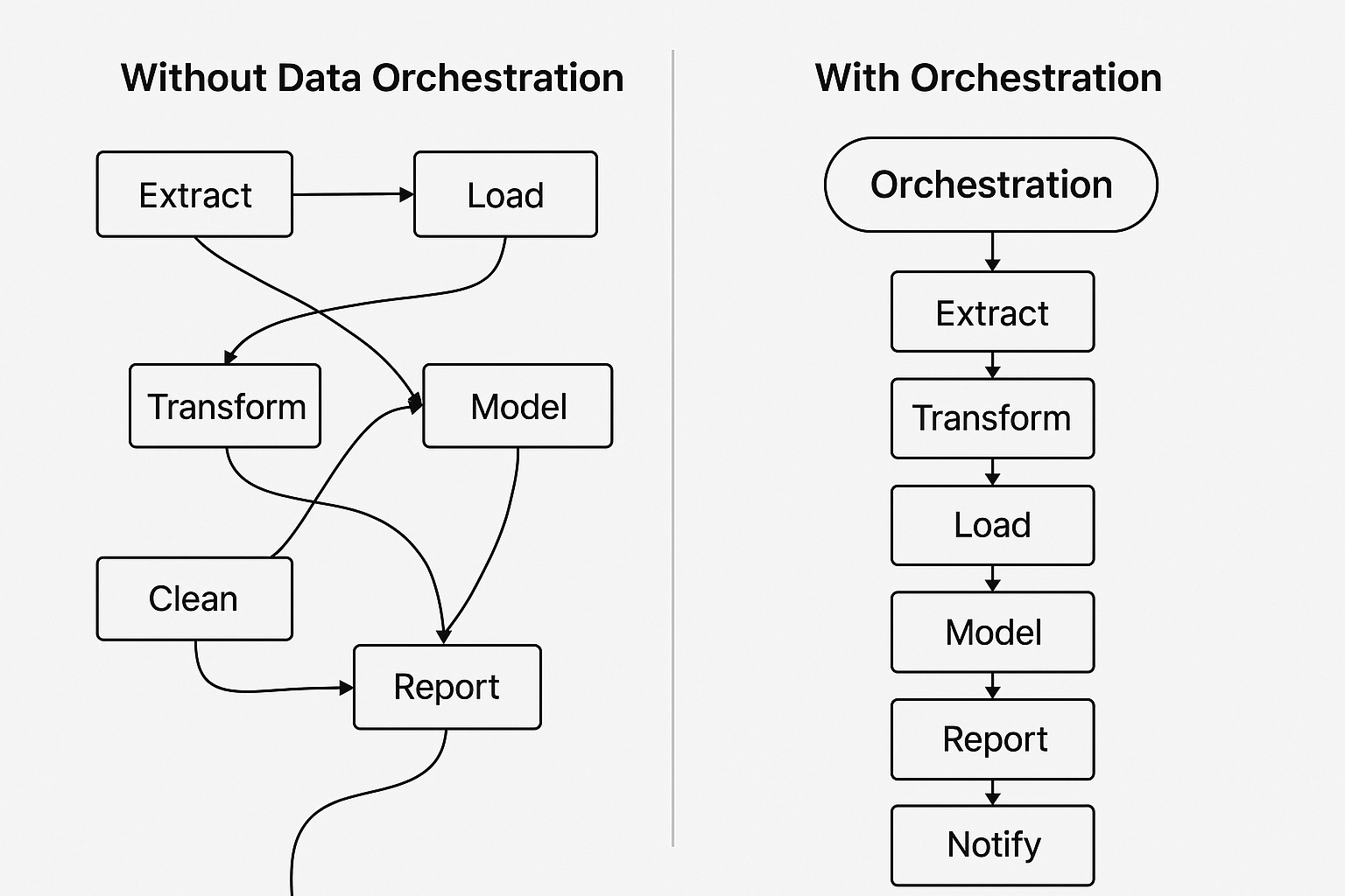 Without orchestration, data engineers often find themselves building increasingly complex scripts filled with conditional logic, error handling, and timing mechanisms, turning what should be a straightforward data transformation into a maintenance nightmare.