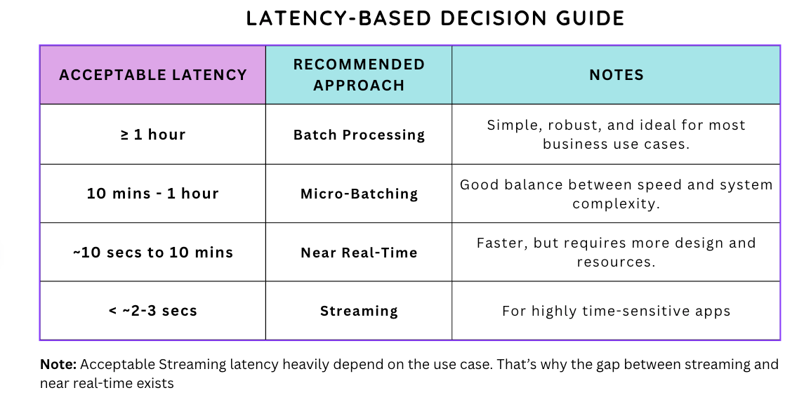 Here's a simple guide to help you choose the right data processing strategy based on how quickly data needs to be available: