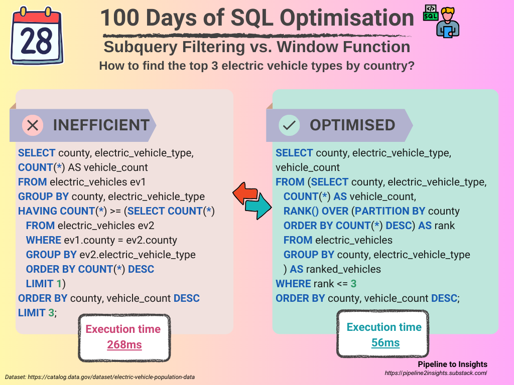 Day 28: Subquery Filtering vs. Window Function