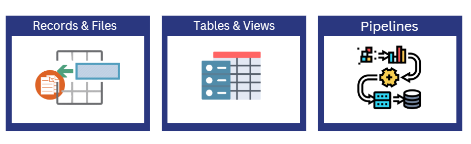 Observability can be applied to individual files and records. These are materialised data assets that land in some storage system.
